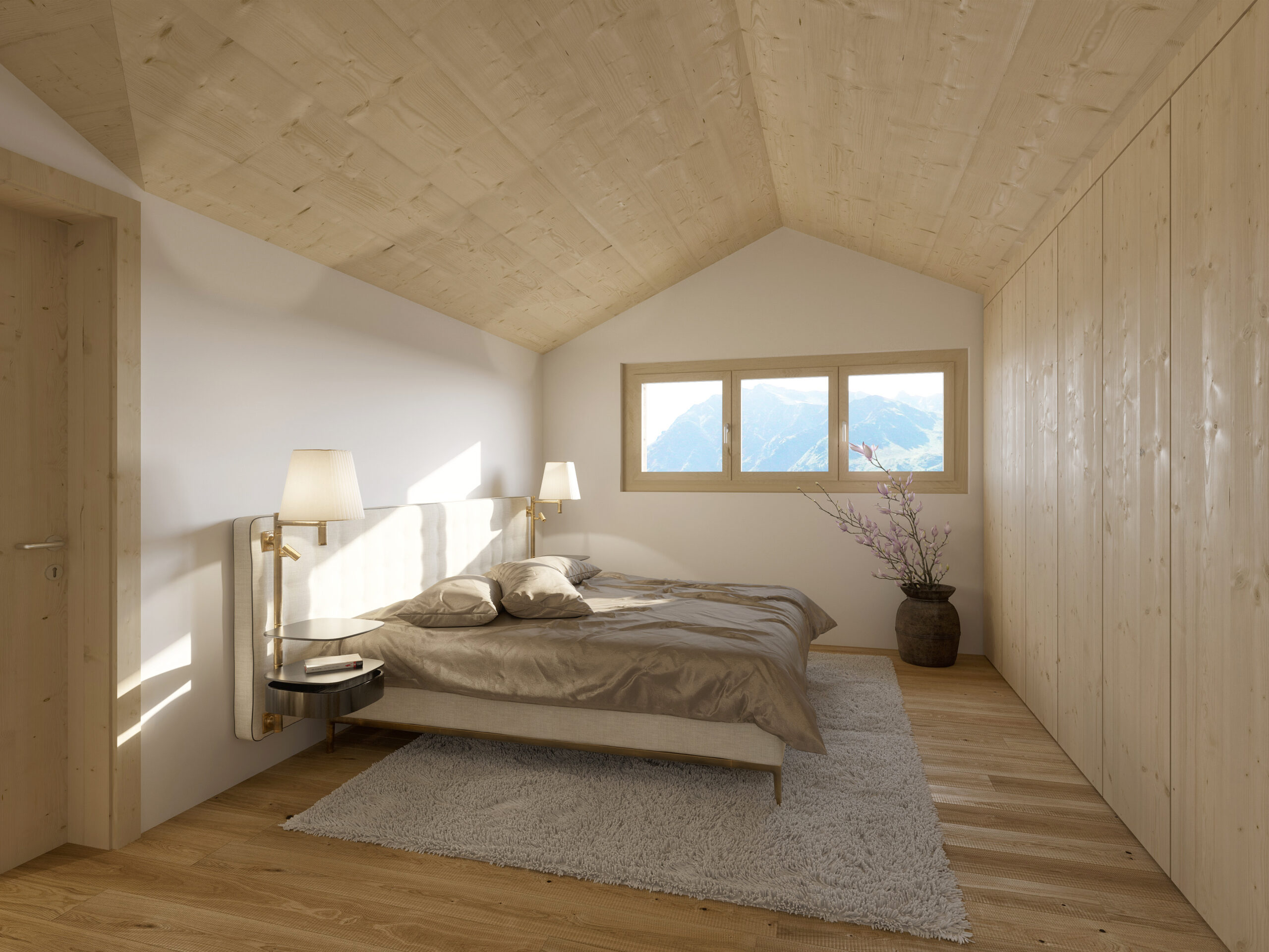 In der weiten Landschaft von Davos Frauenkirch entsteht mit dem Neubauprojekt SOLEA ein Zuhause für Menschen, die Naturverbundenheit, Klarheit und eine stilvolle Umsetzung schätzen. Die Fassade ist in sägeroher Fichte ausgeführt, das Dach in sichtbarer Holzkonstruktion mit Sparren und Balken aus Fichte für einen alpinen Charakter.